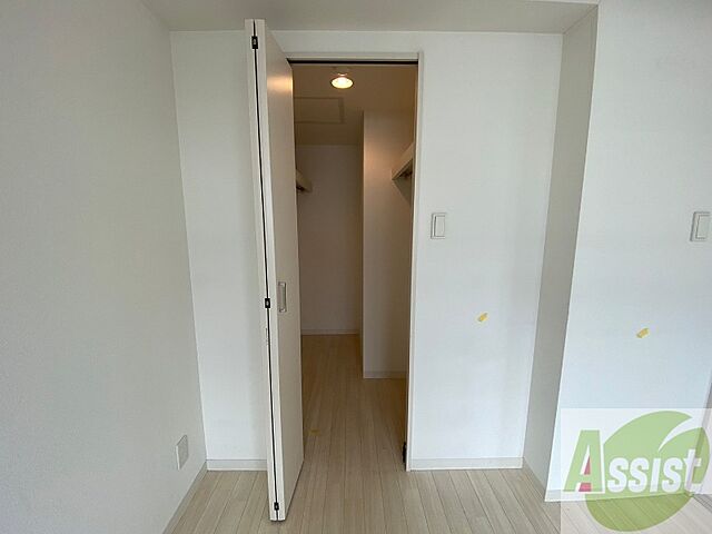 こちらの収納にはハンガーをかけて服もしまえますね。