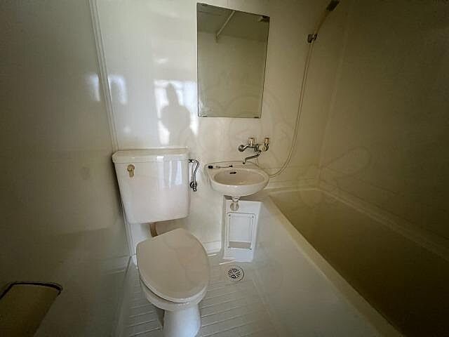 水道代2000円 晴れた日には洗濯物をカラッと乾かせますね。シャワー付きのこの物件で、快適な生活を。バス・トイレが同室で、家賃が抑え目です。椅子を置いて、晴れた日にはゆったり読書でも。