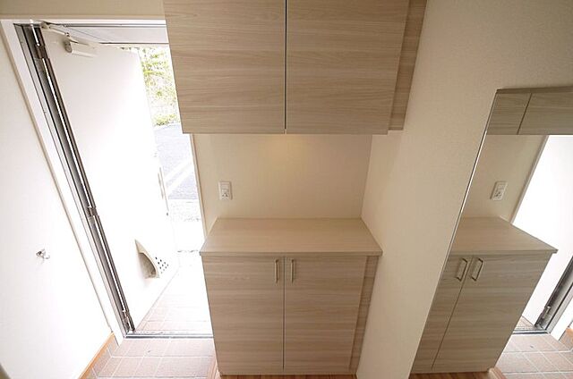 シューズボックス、全身ミラー付き