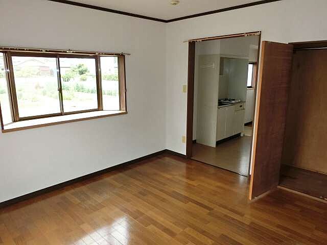 角部屋。ガス台、洗面台付。コンビニ、郵便局徒歩2分。バイパスまで車1分。南向き日当たり良好。