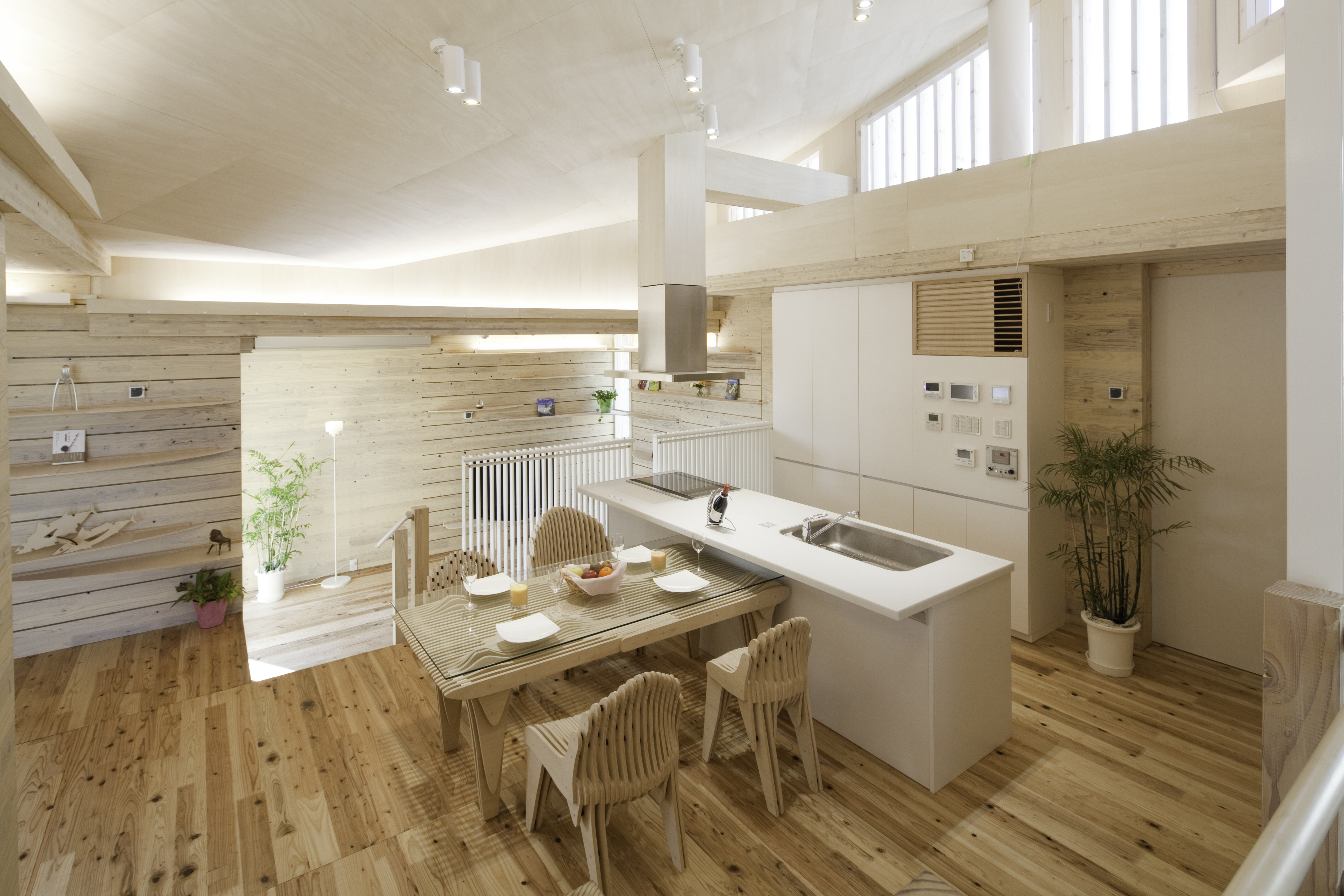 「今回は国産杉を使い、今作れる最大サイズの2.7m×6mを利用、壁工法で作りました。プラモデルのように組み立てるだけなので、約70m2のこの家ならたった3日。また、木の色そのままだと色が強すぎるので化粧仕上げはしましたが、内装の必要がないのもメリット。その分、安く、すぐに建てられます」(前出・池田教授)。木材を使うことで、国内の林業振興にもつながりそうだ。ただ、木そのままでは防火面での不安がある。今後その点の研究は必要だろう。