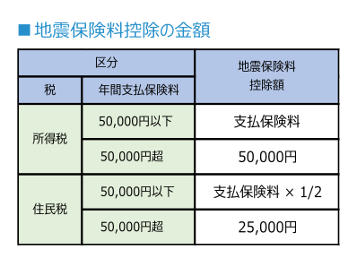 また地震保険料控除は、住民税にも適用され、住民税ではその年に支払った保険料の半額(上限25,000円)が控除される。