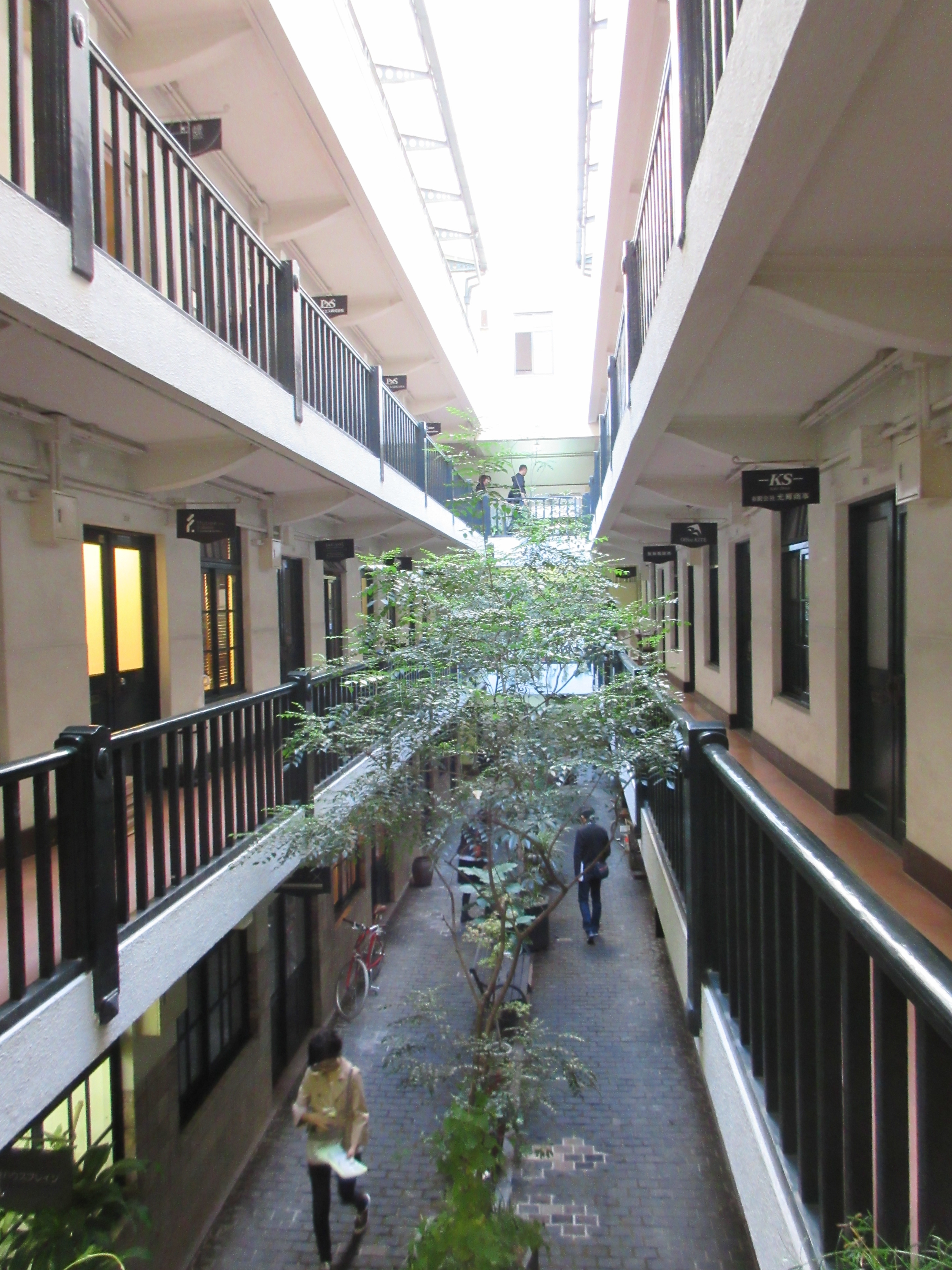 1925年に建設された鉄筋コンクリート造、地上4階、地下1階建てで、建物の中央に路地のような中庭がある。どことなくエキゾチックで、どこかアジアの国の街角のようにも見える。