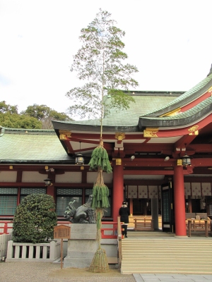 「この地域では、9日の夜に、えびす神が神馬に乗って氏子地域を巡行すると信じられていました。当時の門松は竹に松を盛った大きなもので、通りが狭くなるほどでしたから、とがった松の葉先がえびす神にあたらないよう、9日の夜に、逆さにつけかえたと伝えられています」。