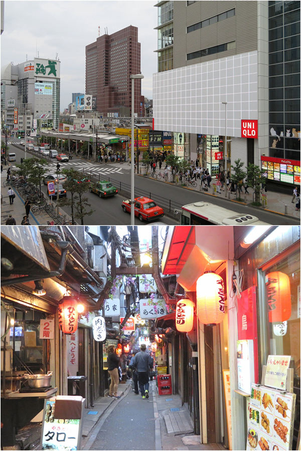 分かりやすいのが過去にボヤ騒ぎなどもあり、何度も開発計画が浮上しては消えを繰り返している、前述の思い出横丁。ここは終戦直後に生まれたラッキー・マーケットの一部で、当初は小田急百貨店まで続いていた。その当時からすると現在の面積は3分の1程度だろうか。店舗は時代に応じて変化してきているが、路地や店舗の位置、店舗の小ささ、密集度などは戦後から代わることなく、約80店が営業。最近は外国人観光客の姿も多い。同様に三軒茶屋の国道246号と世田谷通りに挟まれた通称三角地帯でも、開発の噂はあるらしいが、とりあえず、今も路地裏の風情は顕在である。