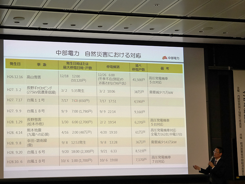 被災後の供給について、中部電力株式会社 総務部防災グループ長 柴田氏は、「南海トラフのような巨大地震が発生した場合、高圧発電機車のみに供給を頼ることは難しい。病院や消防、防災拠点など、どこを優先して復旧・送電していくのか、事前の合意形成を今後進めていきたい。企業や施設でそれぞれ、非常用電源の準備など自助を進めるなど協力をお願いしたい。」と話した。