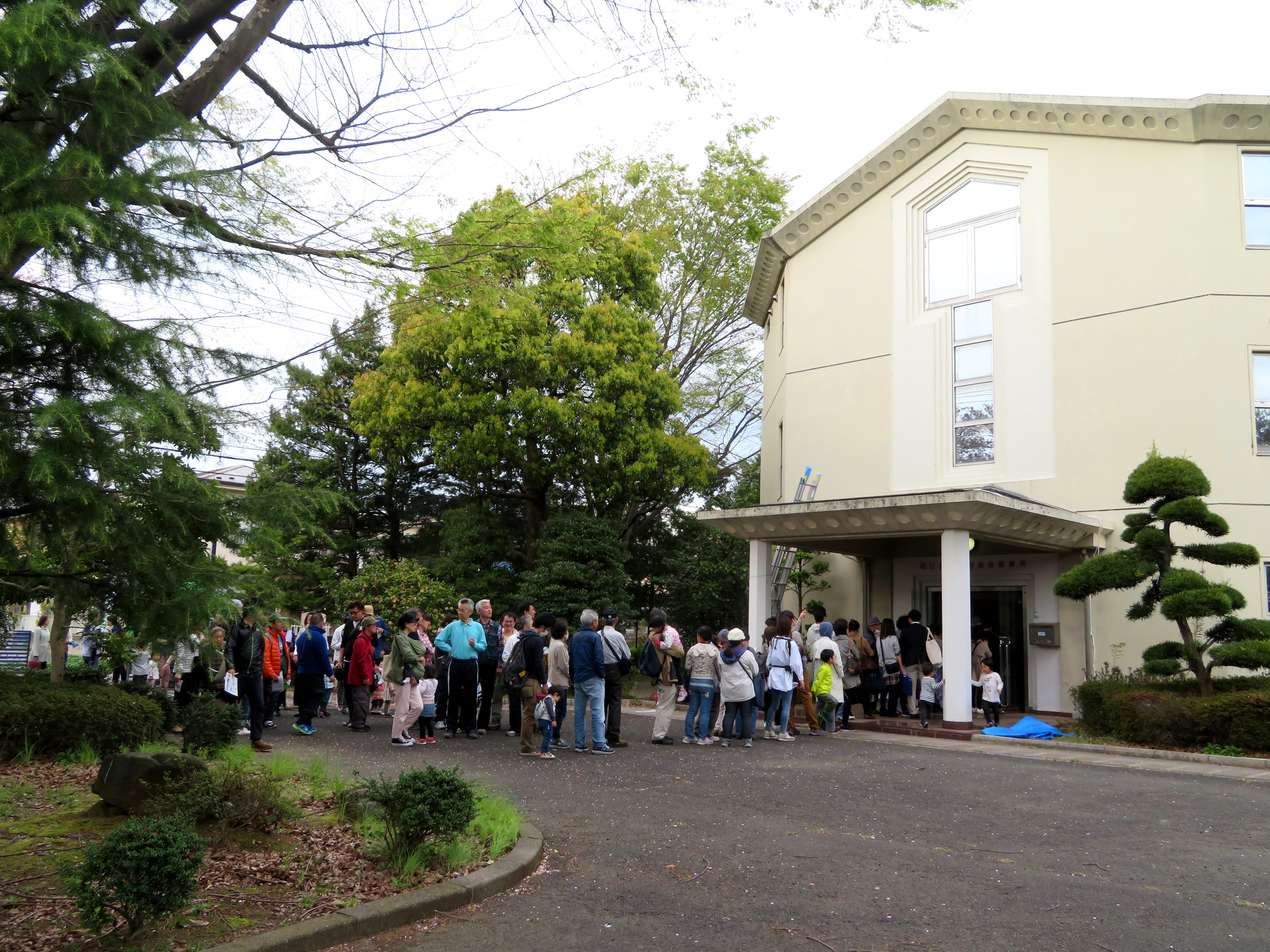 当日のイベントは建物内の使える品を好きに持ち帰るお宝発見ツアー、建物のお祓いに餅まき、壁を利用した落書きイベント、そしてグラウンドでの働く車体験、夜になってから野外で映画を見るねぶくろシネマと盛りだくさん。特に驚くほどの賑わいを見せたのはお宝発見ツアーだ。
