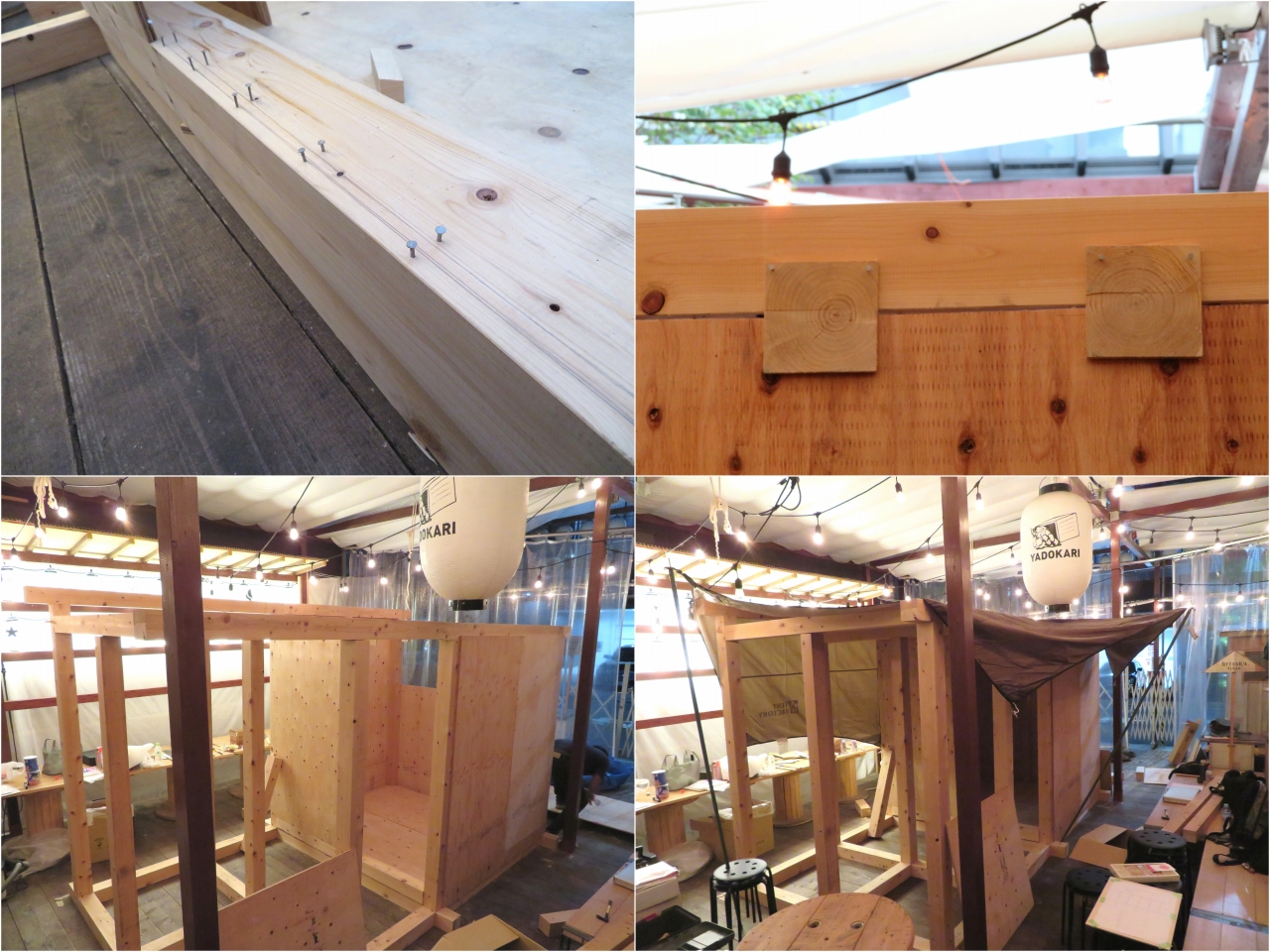 ひとつ、面白かったのが引き戸の作り方。土台と梁に釘を並行に打ってレールとしたのだが、それだけで戸が開け閉めできるようになる。きちんとした資材がなくても、アイディアでモノは作れるのだと実感した。