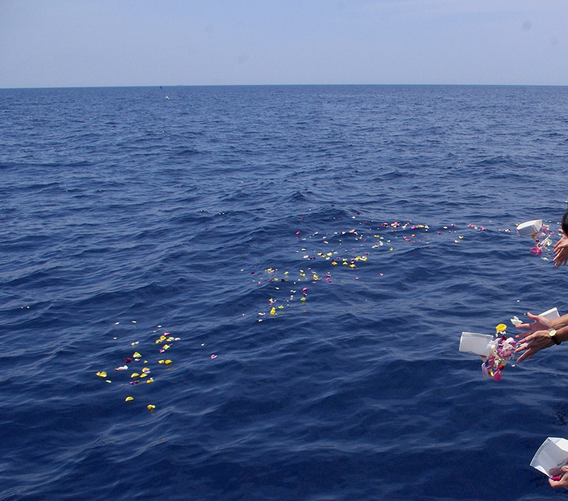 ところで自分の墓はどうするか。厚生労働省が2013年に行なった墓地埋葬等に関する住民の意識調査によると、自分自身が希望する埋葬方法は、1位:先祖代々のお墓(29.5%)2位:散骨(16.6%)3位:新しく建てた墓(12.4%)4位:永代供養墓(10.7%)と言う結果であった。散骨の中でも海洋散骨は山や森林に比べて許可が取り易く、費用面でもリーズナブルということで人気になっている。最近では、飛行機からの上空散骨も登場して耳目を集めた。