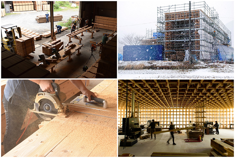 時間をかけ、技術を磨いて家具には向かないといわれた檜を素材にした家具作りに成功した「ようび」である。効率的に短時間で建つような社屋を再建したのでは、これまでやってきたことに背くと木で作ることになった。しかも、延べ床面積800m2というサイズの建物を専門家ではない多くの人たちが手で木材を刻んで組み立てるという、非常に面倒な、いや、考えられる限り最も面倒な方法で作ることにした。