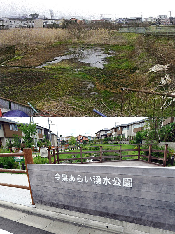 この「荒井湧水」は、同社が植栽の提案と施工を担当し、「今泉あらい湧水公園」(秦野市管理の為、ABINC認証範囲外)へと生まれ変わった。水辺は、ヒメシャラやコムラサキなどの自生種で彩られ、公園北西には水神様の祠、「荒井湧水」が流れる小川には小さな橋が架かり、水辺広場や親水デッキと共に、自然や水と親しめるしつらえがなされている。