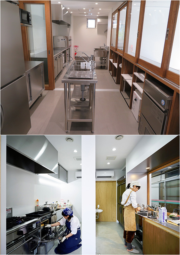 さて、そのHIBARIDOは大きく3つの施設からなる。ひとつは1階にあるシェアキッチン。大型の冷蔵庫やオーブン、シンクその他を備えた広いキッチンで一時に2人が利用でき、定員は16人。2018年6月時点ですでに8人がメンバーとなっている。