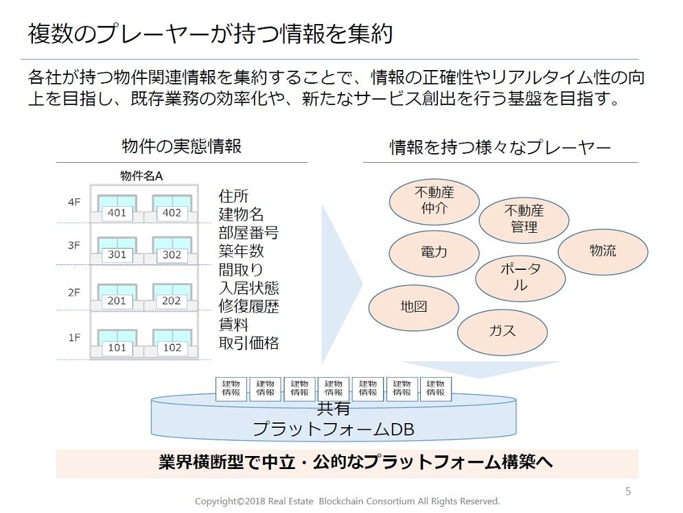 DBの構築による正しい不動産情報の共有を目指し、そして異業種が集まることによるシナジー効果を期待して、多くの企業への参画が呼び掛けられた。
