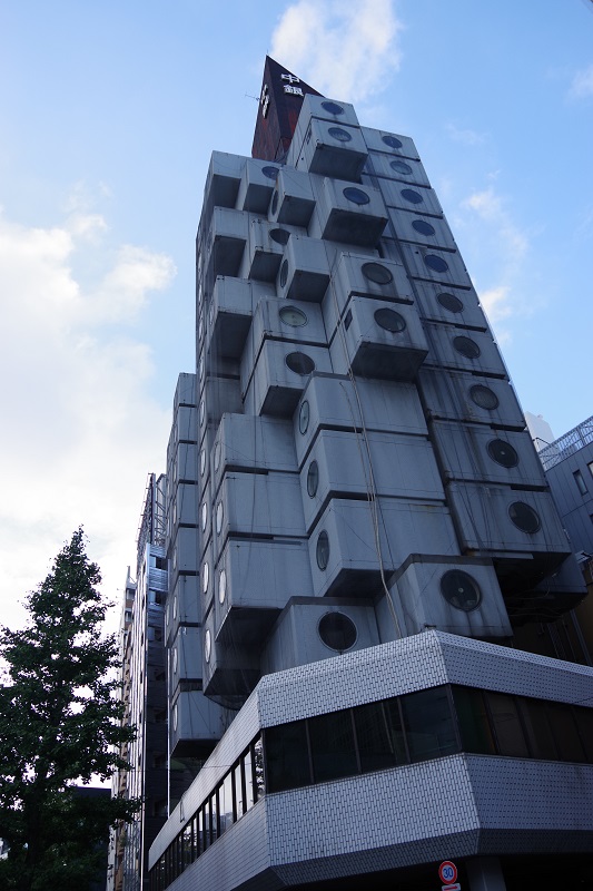 中銀カプセルタワービルを経て、夕暮れの銀座へ