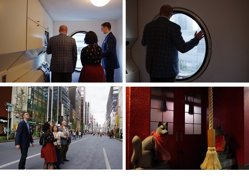 カプセルの中に入り、黒川紀章やメタボリズム、またビルの歴史についての説明を受けると、一層この建物の貴重さを実感できる。部屋はほぼ当時のままに残されており、一行は象徴的な丸窓やレトロなテレビ・ラジオなどに興味津々だった。