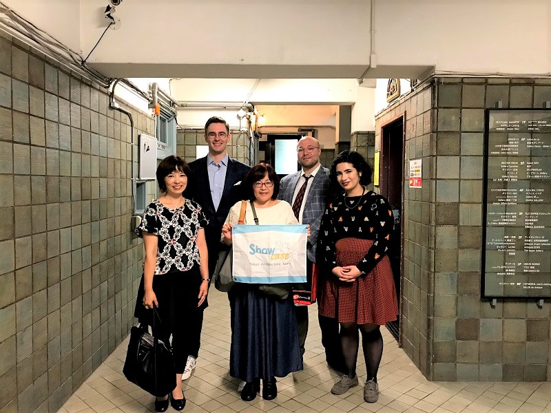 参加者は、米国出身で日本在住のクリスタルさん、デービッドさんと、2人に会うため来日した友人のダンさん。3人とも日本の建築に興味があり、中でもダンさんは黒川紀章のファンだという。元々は中銀カプセルタワービルのコースの申し込みだったが、周辺も併せて見たいということで、銀座コースも組み合わせることになった。Showcaseのツアーは、1回5名までのプライベートツアーなので、コースの組み合わせやカスタムツアーの依頼にも柔軟に対応可能だ。