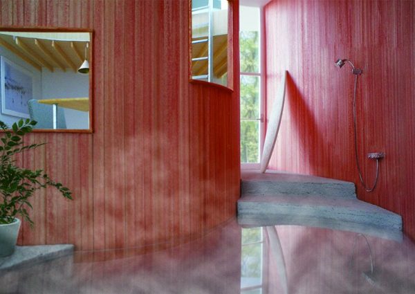 「サーファーの住まいは、屋外にシャワーが取り付けられていて、そこで砂を流してから家に入るようになっていました。だったら、家そのものを、もっとお風呂の機能に特化してはどうだろうかと」。