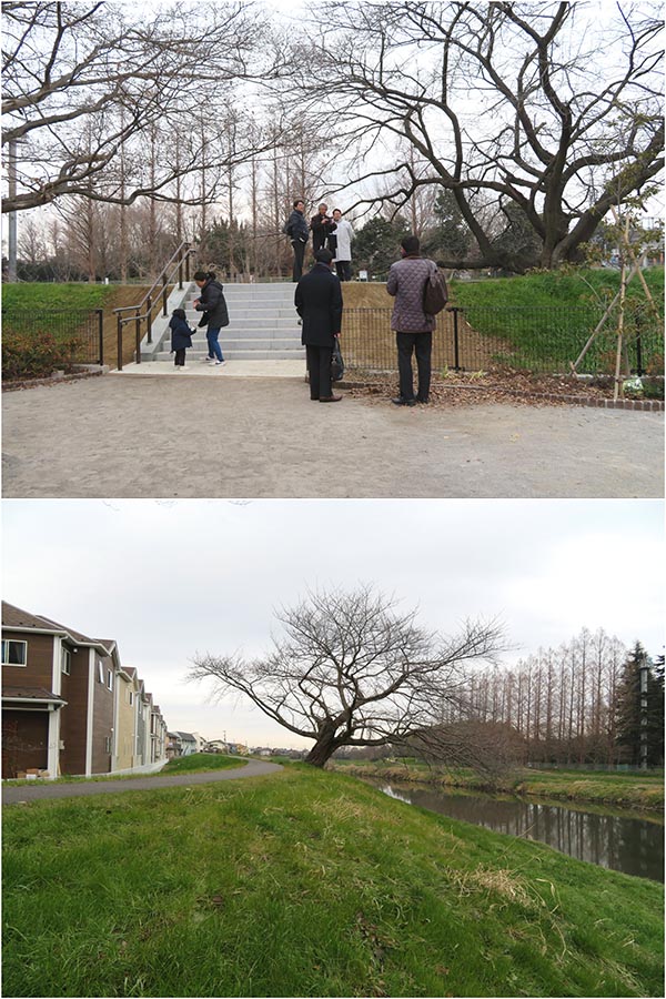 階段自体はなんの変哲もないものだが、これがあることで川への心の距離が縮まった。そして堤に上がるとこんな風景。中央にあるのは桜で、対岸にあるのが宮内庁の鴨場。春の桜、緑の情景を心の目で見ると、どうだろう、素晴らしい眺めが見えないだろうか見た目には地味だが、実は大きな存在が公園から河川敷への階段である。河川敷は埼玉県が管理しており、隣接する公園は分譲会社から市に移譲された市有地で管理者が異なる。加えて河川敷と公園の間には堤があり、水害への懸念からこうした場所に建造物を作る許可はなかなか得にくい。分譲会社だけで許可を得ようとした場合、難しかった可能性もある。だが、ここに階段を作り、河川敷を利用することが地域のためになると市が判断、県と協議した結果、可能になったという。