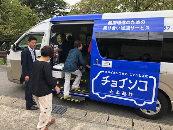 日帰り入浴施設の無料送迎バスを利用して、高齢者の外出機会を増やす