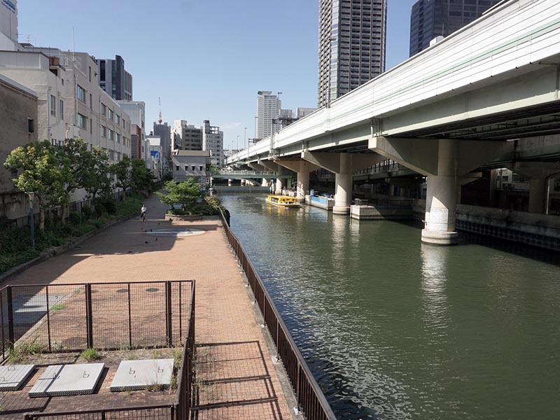 他の川に比べると、東横堀川はあまり知られていないと、地元の人は言う。理由の一つは川幅が狭いこと、もう一つは道路から川面が見えにくい箇所があることだろう。緑地は整備されているが護岸が高く、他の河川と比べると、閉鎖的な印象を受ける人もいるかもしれない。