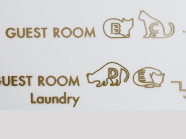住宅とホテルを明確に分ける義務があるため、玄関アプローチが唯一の共有部分で、入り口は居住用と宿泊者用で分かれている。また、ホテルにはフロントも必要なので、ホテル側の入り口にはカウンターと、畑さんが受け付け業務や事務作業を行うスペースが作られた。