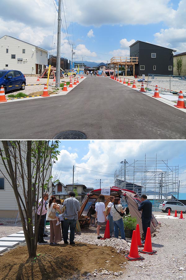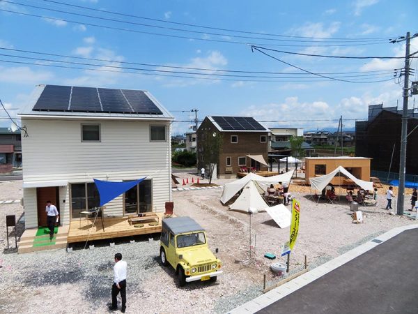 山形県山形市で建設が進む全19戸の建売住宅地「山形エコタウン前明石」は地元の工務店・株式会社荒正、アウトドア用品メーカー・株式会社スノーピーク、そして東北芸術工科大学が連携して取り組むプロジェクトである。高気密・高断熱のエコハウスの建設が進んでおり、2019年6月からは、すでに完成した3タイプの間取りの3棟を中心に街びらきイベントが開催されるようになっている。
