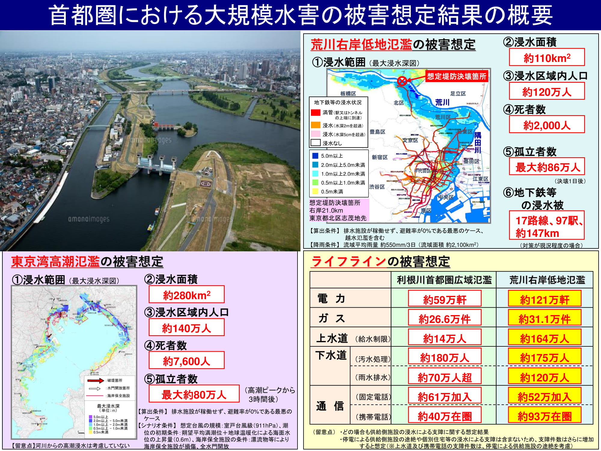 浸水の長期化と区域の拡大が懸念される荒川の氾濫