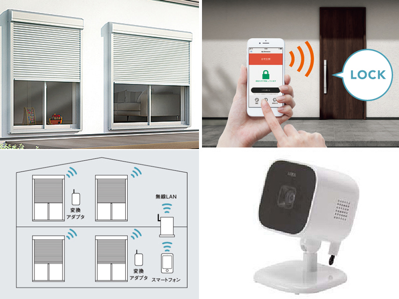 ![(左上下)[住宅用窓シャッター] 専用アプリをインストールすると、手持ちのスマートフォンで開閉や登録したシャッターの開閉状態を確認することが可能。無線LANを介して、家中のシャッターをスマートフォンで一斉操作も。(右上)[スマートロックシステム FamiLock(ファミロック)] 手持ちのスマートフォンが玄関のカギになり、施解錠履歴の確認も可能。 (右下) [屋内カメラ] 動画や写真を撮影し、入退の記録や確認が可能に。 人感センサ機能も付いているので、センサ検知後の撮影と保存も](http://lifull-homes-press.s3.ap-northeast-1.amazonaws.com/uploads/press/2019/10/lixil02-600x450.jpg)
