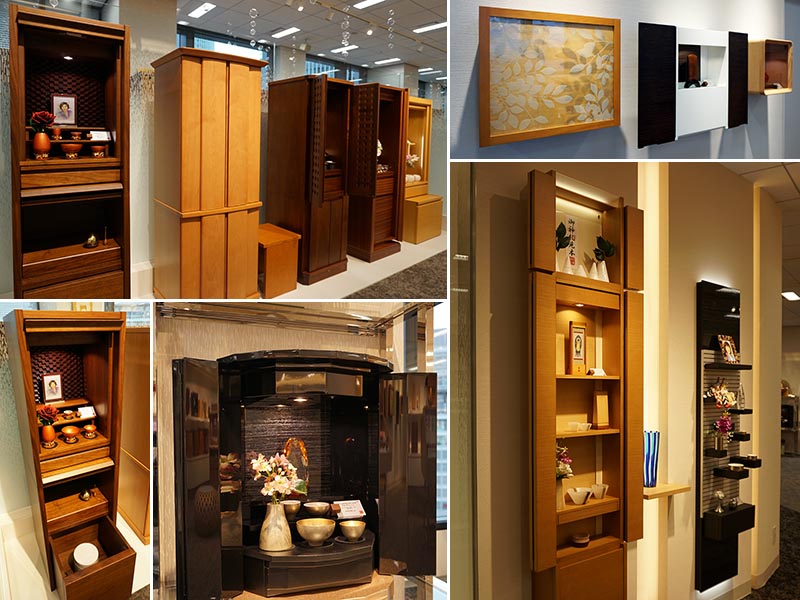 また、床置きや上置きタイプの仏壇では、扉に工夫がみられる。従来のものは開いた扉の分のスペースも必要だった。だが、現在は省スペース対応が進み、上下に開いて、上の扉がスライドしてそのまま天井部分にしまうことができ、下の扉は台替わりにもなるというようなものや、側面にぴったりと収納できるといったものがある。数センチ、数十センチでも、置く場所の悩みを解消する設計となっている。