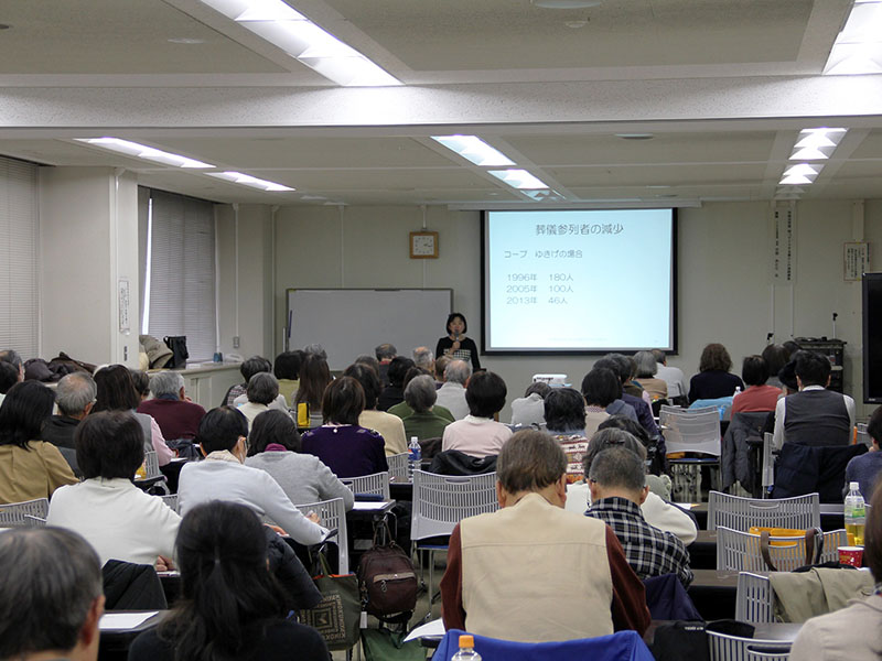 東京都多摩消費生活センター主催により行われてきた「暮らしの連続講座」。最終回のテーマは「葬儀と墓」。講師のシニア生活文化研究所の所長、小谷みどり氏によると、30年ほど前のバブル時代までは、葬儀は、家族などの残された者が考えるもので、自分の葬儀について考える人はほとんどいなかった。また、葬儀の形式にも大きな違いはなかった。ところが今は、伝統的な仏教式から無宗教のものまで、葬儀のスタイルが多様化しているうえに、葬儀は行うものという常識も崩れてきている。東京では、葬儀をされない人が約30%に達しているそうだ。こうした変化の背景にあるのは、やはり高齢化がある。