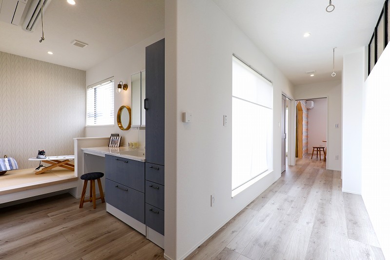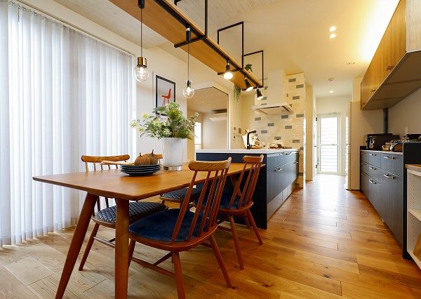 近年耳にする「VOC対策」も多彩。構造材は抗菌性の高い「国産ひのき材」を使い、白アリ対策には薬剤を使わずに網目で侵入を防ぐ「ターミメッシュシステム」を採用。床はLEDなどの弱い光でも不快物質を分解・除去できるikutaの「可視光型光触媒フローリング」を、天井にはホルムアルデヒドの吸着・分解作用がある「せっこうボード」を用いた。