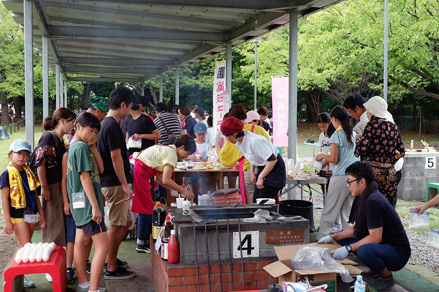 きっかけとなったのは2016年4月に起きた熊本地震。3つのマンションではすぐさま支援物資集めが始まり、被災地益城町で活動する人たちとの交流がスタート。同時に支援の経験を自分たちにどう生かすかの模索が行われ、その結果、2016年6月に3つのマンション合同で開催されたのが「炊き出しフェス」である。おいしく、楽しく、お金をかけずに実践的な防災を目指した同フェスで減災ガールズが誕生した。