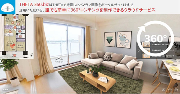 具体的には、物件案内をオンライン上で行えるリコーのWEBサービス『THETA360.biz(シータサンロクマルビズ)』だ。