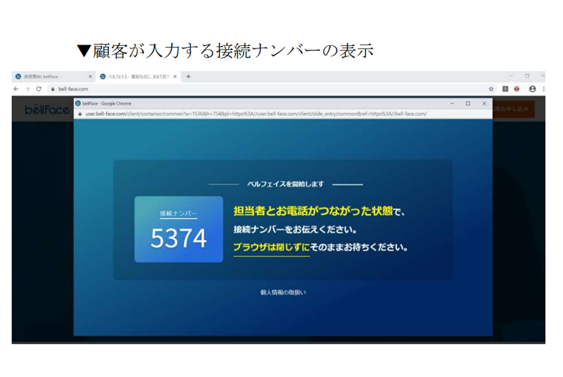 ▲同社ではオンライン接客の際に、商談システム『ベルフェイス』を使用。約束の時間になると販売担当者からまず電話が入り、電話での案内に従ってパソコンを操作して接続ナンバーを発行。そのナンバーを担当者に伝えると、相談がスタートする仕組みになっているしかし、いざ実証実験をスタートしてみると、顧客ではなく“販売担当者の理解を得ること”が最も大変だったという。