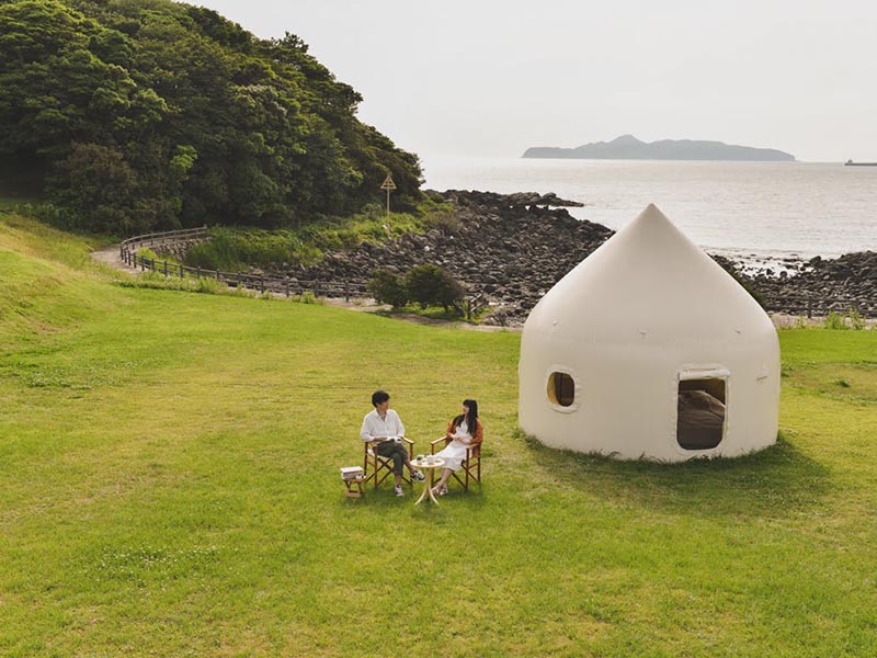 北川さんによれば「膨らませて固める」という工法は「世界的にも前例がない」という。もちろん日本にも類例がないため、法律上は建築物に位置付けられず、テントやトレーラーハウスと同じ扱いになるそうだ。「けれども、建築物と同等の性能を目指しています。難燃材を使っているので火にも強く、表面に不燃材を吹き付ければ不燃仕様にもなります。丸みのある外形は風を受け流すので、実は四角い建物よりも強風に強いんです」