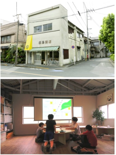 プロジェクトで毎月出しているフリーペーパーHOTSANDOでの取材を機に物件オーナーから自店舗2階の活用の提案を受けて実現したのがアウトプット型探究学習塾・エイスクールが運営するシェアスペース「たくらみ荘」。乾物屋さんの2階の使われていなかった空間が学びの場になった。