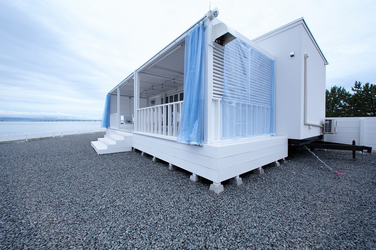 同社では、自治体の遊休地を利用したキャンピングホテルの設計も進めている。テレビでも取り上げられたこのプロジェクトでは、海に面した公園にトレーラーハウス20台を並べ、ジェットバスが付いたテラスでバーベキューも楽しめるといったキャンプホテルだ。