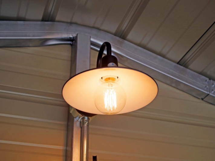 壁は木板かクロス、 床は木板かフロアタイルのどちらかを選択。窓、スチールシャッター、コンセント2ヶ所、照明器具(レトロランプ4個+ブラケット1個)、アメリカンスイッチ1ヶ所が標準装備となっている。母屋から電源をひける場合はパソコンなどの電化製品が即使用可能だ(※屋外にコンセントがない場合は別途電気工事が必要)。
