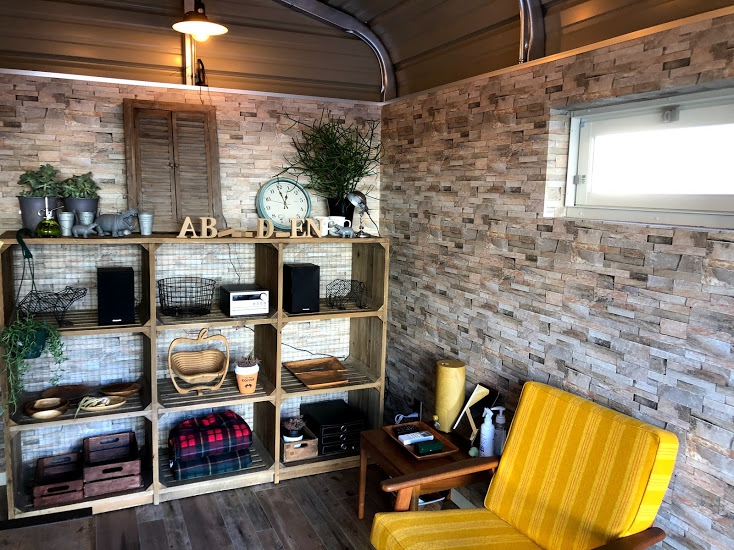 「外壁とトリム(縁取り)の組み合わせを変えるだけで印象はガラリと変わりますよね。内装は、基本は木板使用で、カリフォルニアスタイル、レトロ調、アメリカンダイナー風、山小屋風などお好みのスタイルに合わせて貼り方を変えることもできます。今年1月に納品させていただいたユーザーさんは、ヨーロッパテイストがお好みだったので、床も壁も木目のクロス仕様にして、カラーも落ち着いた雰囲気になりました」