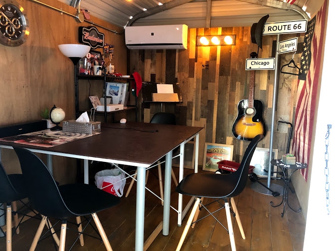 中をのぞかせてもらうとコンパクトにまとめられたアメリカンテイストな空間が広がっていた。サイズは幅2.2m×長さ3.6m、およそ5畳分のスペースだ。