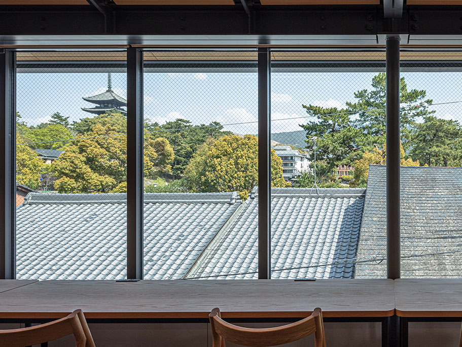 併設されている飲食店にもこだわっている。スペシャルティコーヒー専門店「猿田彦珈琲」では「ならまちブレンド」が楽しめ、すきやき店「㐂つね」には大和牛を奈良産の大きな揚げで包んだお重など、奈良にちなんだメニューもいただける。奈良に住まう人も国内外から訪れる観光客など、誰もが立ち寄れる奈良の憩いの新名所だといえるだろう。