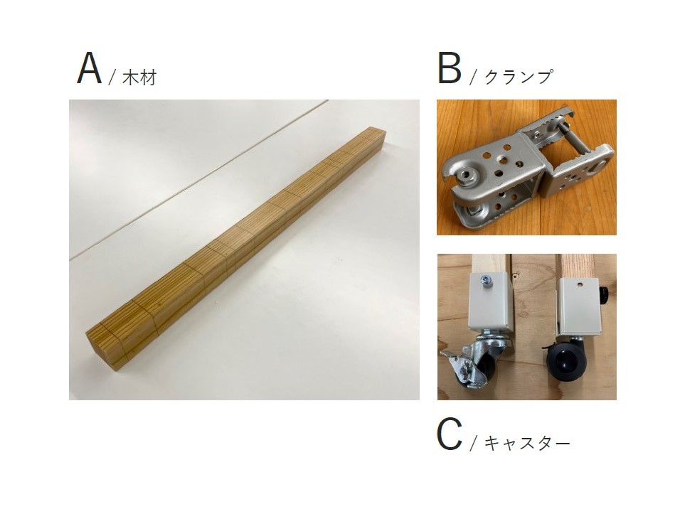 また、キャスターを取り付ける際、当初はインパクトドライバーでビス(ネジ)を打っていたが、素人が真っすぐに打ち込む難しさがあらためて分かり、キャスター用のクランプを製作して、はめ込めば済むようにした。