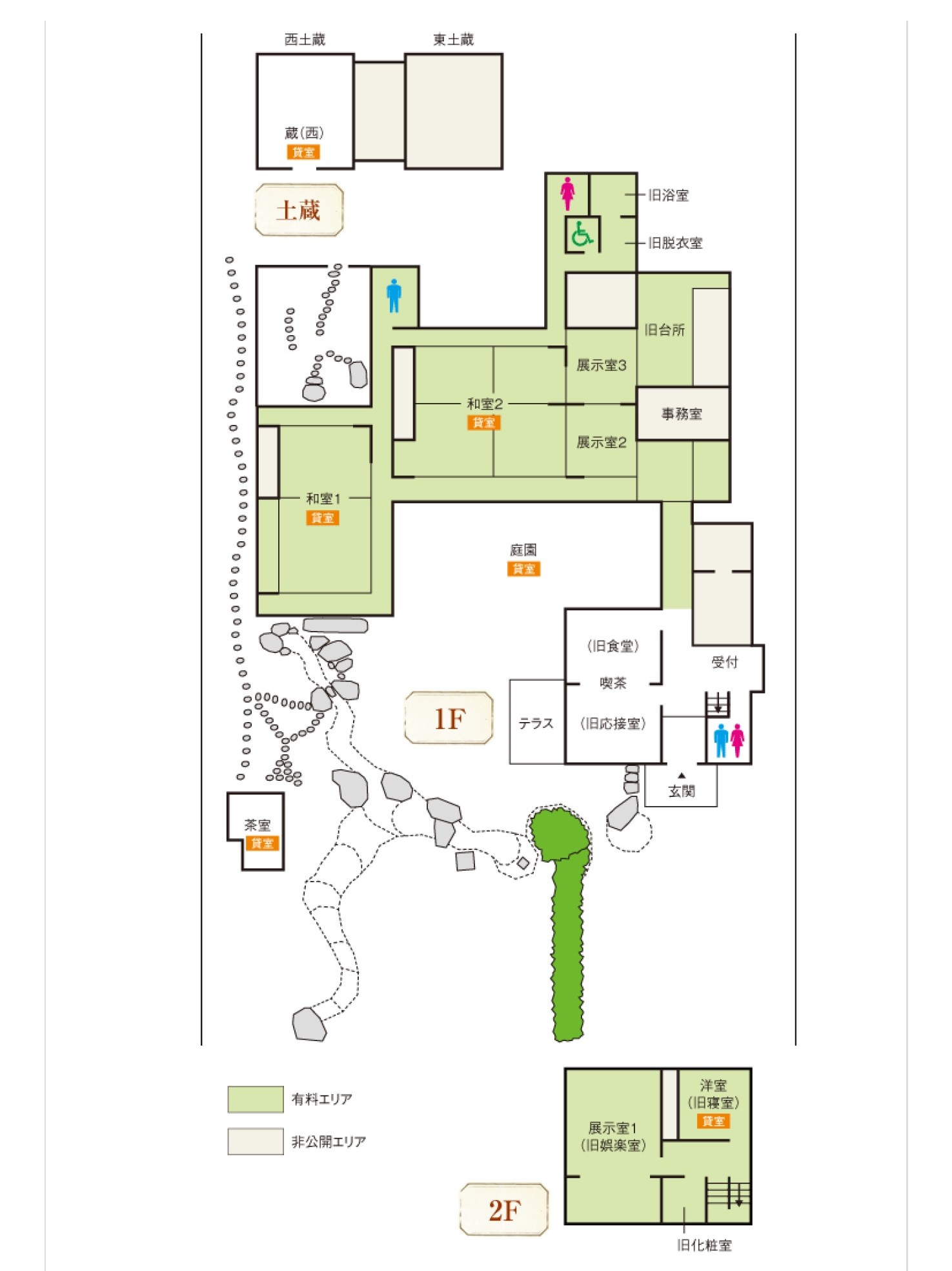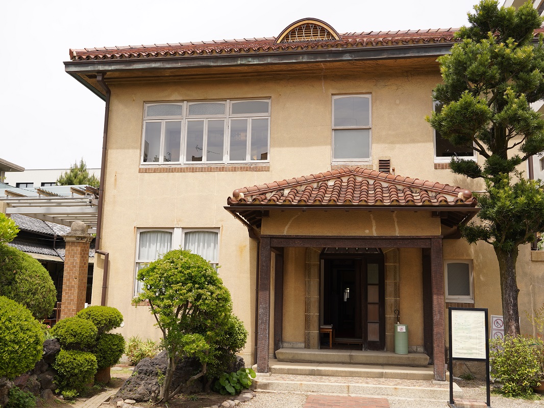 現在の入場口は洋館の玄関となっているが、当時、家族の出入りや通常の客を迎えるのは和館の玄関だった。いまは非公開になっているが、館内レイアウトでいま事務室になっている部屋の手前と展示室2というところが、客人の対応をする場所だったそうだ。