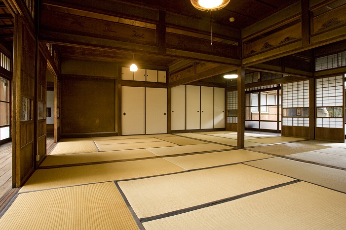 そして和室2となっているところが、家族の間。4室あるうち、庭に面した最も広い部屋が主の部屋。その右隣が奥様の部屋で、その上が子どもたちの部屋。残る1つが、仏間だった。現在は建具が取り外されて1つの空間になっているが、主の部屋からが最も庭の眺めが良かったり、子ども部屋の畳に当時は安かったヘリのないものが使われていたりと細かな違いが興味深い。