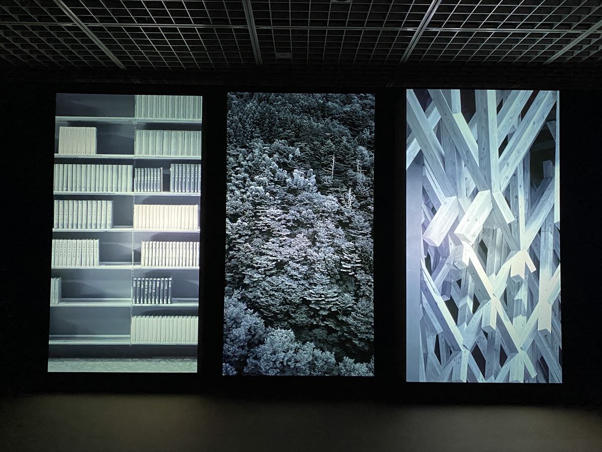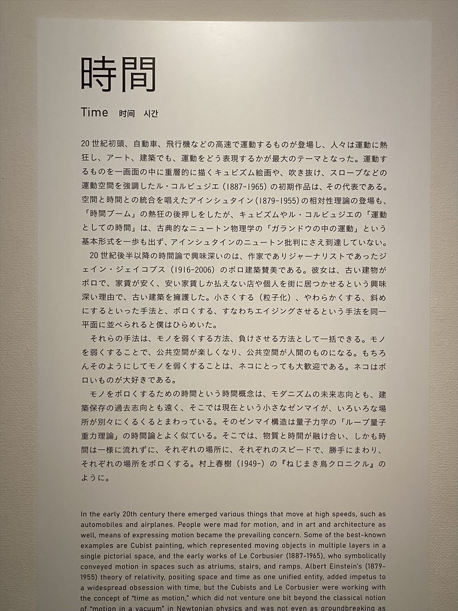 次は「斜め」。その後に、映像作家・瀧本幹也氏の映像インスタレーション「梼原の隈建築」が挟まり、有料ゾーンの最後は「時間」。