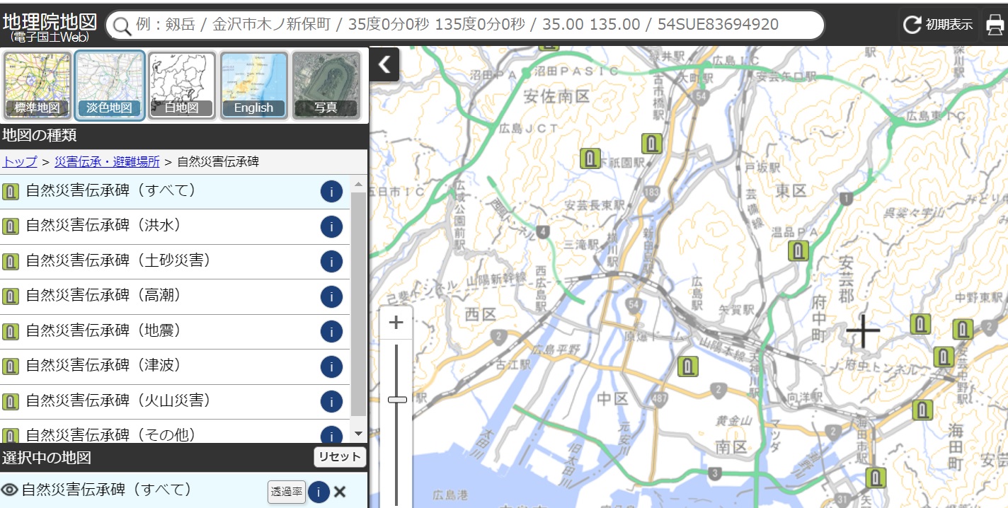 自然災害伝承碑(国土地理院)