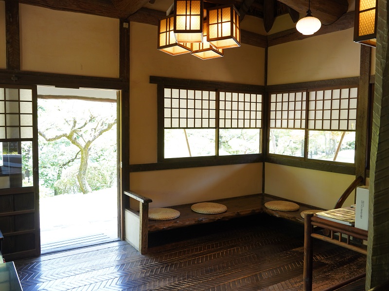 萬松園に足を踏み入れて感じるのは、多くの部屋に自然光が届き、明るいことだ。これは雁行型(がんこうがた)といわれる造りに由来する。雁(かり)が群れで飛んでいくときの形に似せて各部屋をずらして配しているので、窓から光を取り込める。現在は木曽川に面した庭に植えられた木が育って川の流れを部屋から直にはほぼ見られないが、涼やかな川風は届き、実に心地よい空間となっている。