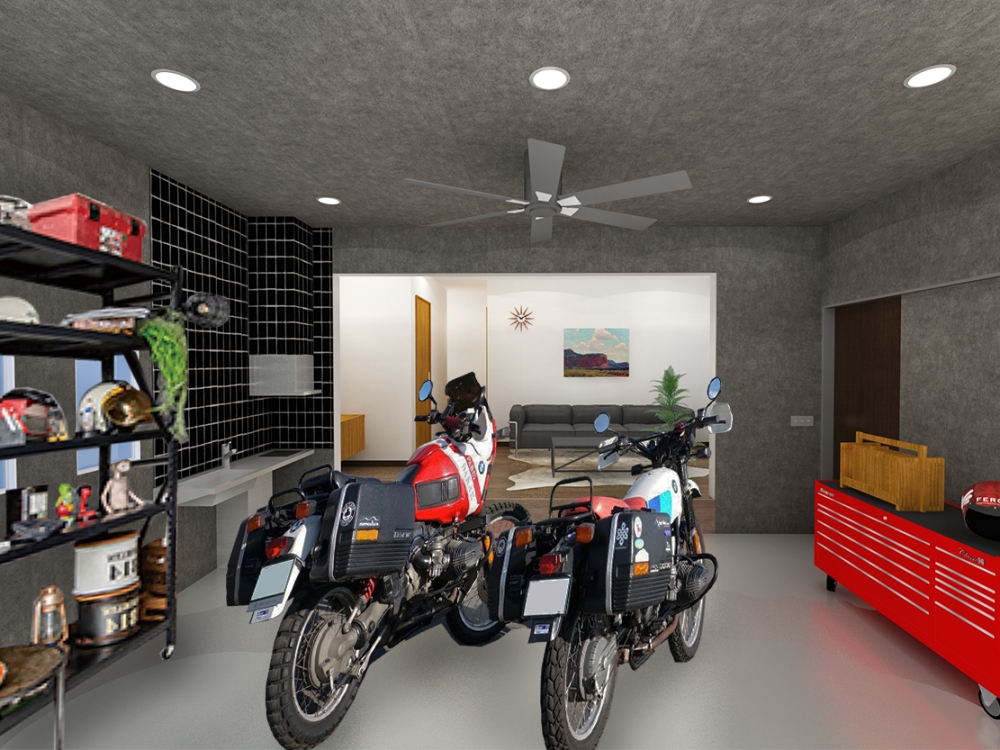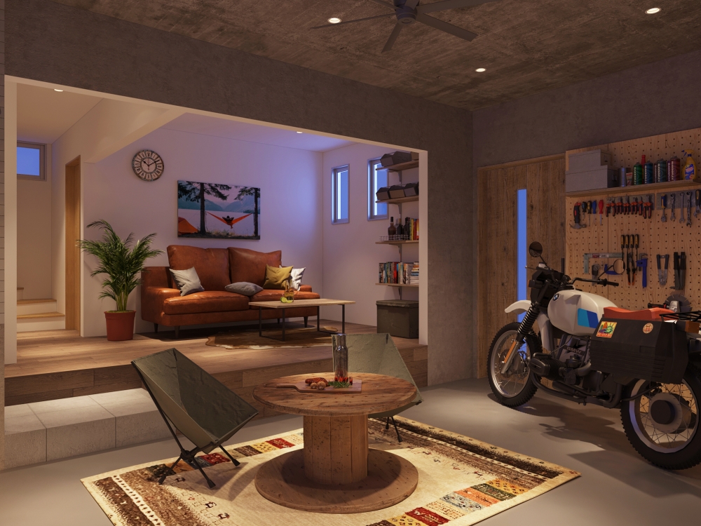 バイク乗りのツボを押さえた仕様は、趣味を楽しむスペースとしても