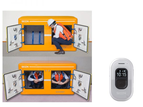その他、地震や津波、土砂崩れ、洪水などから身を守るためのシェルターもある。セコムの商品の場合、本体は衝撃に強い繊維強化プラスチック(FRP)。密閉構造で防水性を確保し、水に浮いた場合にハッチが上を向く構造となっている。
