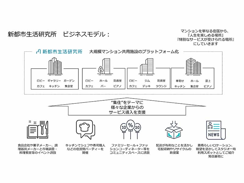 マンション住人は、マンションの理事会の活動に仕事をしながら、多くの時間を割くことができない。“外部の企業の力が必要だ”と感じた、その経験から“マンション内の共用施設を活用したイベントやサポート”が行える事業とする「新都市生活研究所」を立ち上げたのだという。